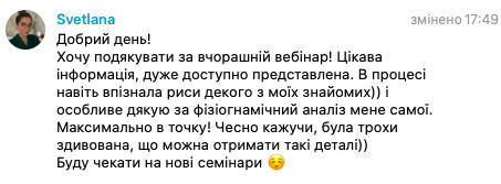 У одного з учасників вебінару буде можливість отримати фізіогномічний розбір про себе в прямому ефірі (в zoom)