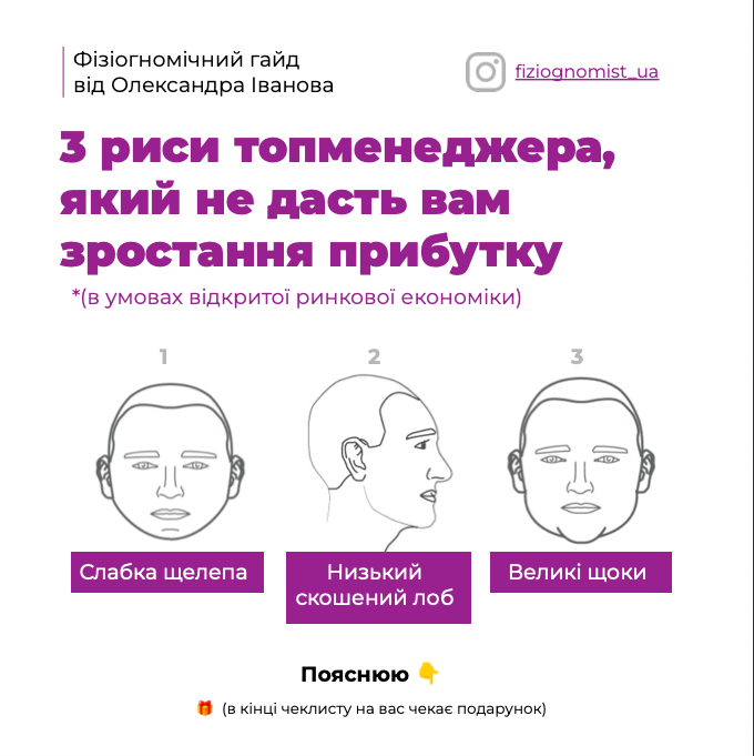 Встигніть придбати доступ до курсу протягом 60 хвилин і отримайте гайд, де дізнаєтеся 3 фізіогномічні сигнали про те, що кандидат перед вами з високою ймовірністю не впорається із поставленими задачами.